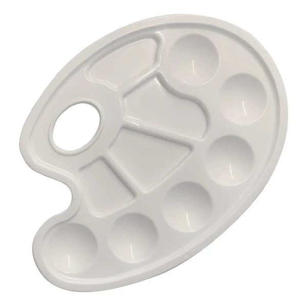 Műanyag festékkeverő paletta festékkeveréshez. 6 kerek és 4 szögletes lyukkal, valamint praktikus fogantyúval ellátva.Méret: 23,2 cm x 16,8 cm x 1 cm. Súly: 64 gr. Rendelési minimum: 10 db